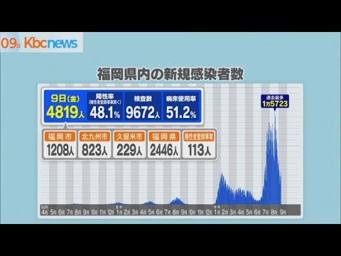 福岡県によりますと、9日の新規感染者4819人の内訳は、福岡市1208人、北九州市823人、久留米市229人、県が管轄する地域2446人などとなっています。