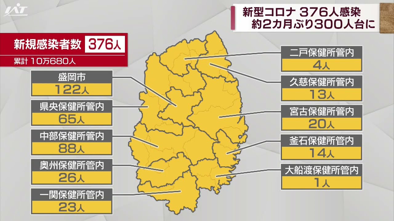 岩手県と盛岡市は、新たに376人が新型コロナウイルスに感染したと発表しました。