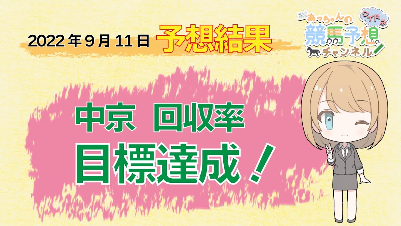 2022年9月11日に開催された、中山・中京競馬場全レースを予想した結果の的中率、回収率をお知らせしています。