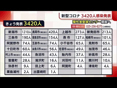県内で10日、新たに新型コロナウイルス感染が発表されたのは、新潟市で1210人、長岡市で420人、上越市で273人など、合わせて3420人です。