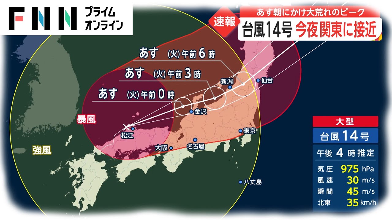 3連休を直撃した大型の台風14号は、列島を縦断しながら、19日夜、関東に接近するとみられている。