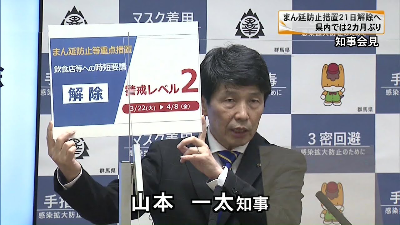 群馬など18都道府県に適用中のまん延防止等重点措置について、政府の分科会は、今月21日の期限で解除するとした政府案を了承しました。県内では、2カ月ぶりに解除となり、山本知事は、飲食店などへの時短要請を解除する方針を示しました。