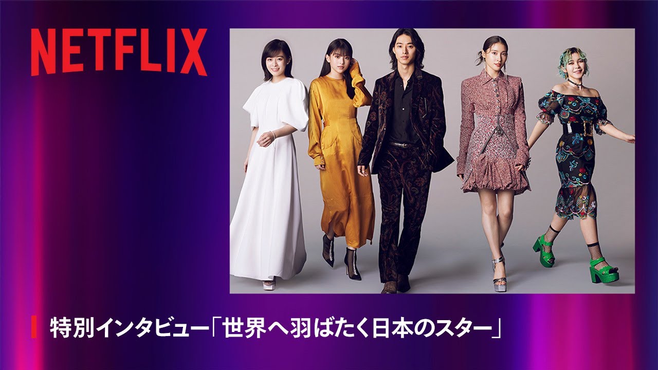 Netflixで配信する作品に出演する「日本のスター」5人が集結。「今際の国のアリス」から山﨑賢人と土屋太鳳。「舞妓さんちのまかないさん」から森七菜と出口夏希。そして「ジョジョの奇妙な冒険 ストーンオーシャン」からファイルーズあい。 作品と一緒に成長したこと、世界に作品が届くことの意気込みを世界中のファンに向けた特別インタビューでご覧ください。