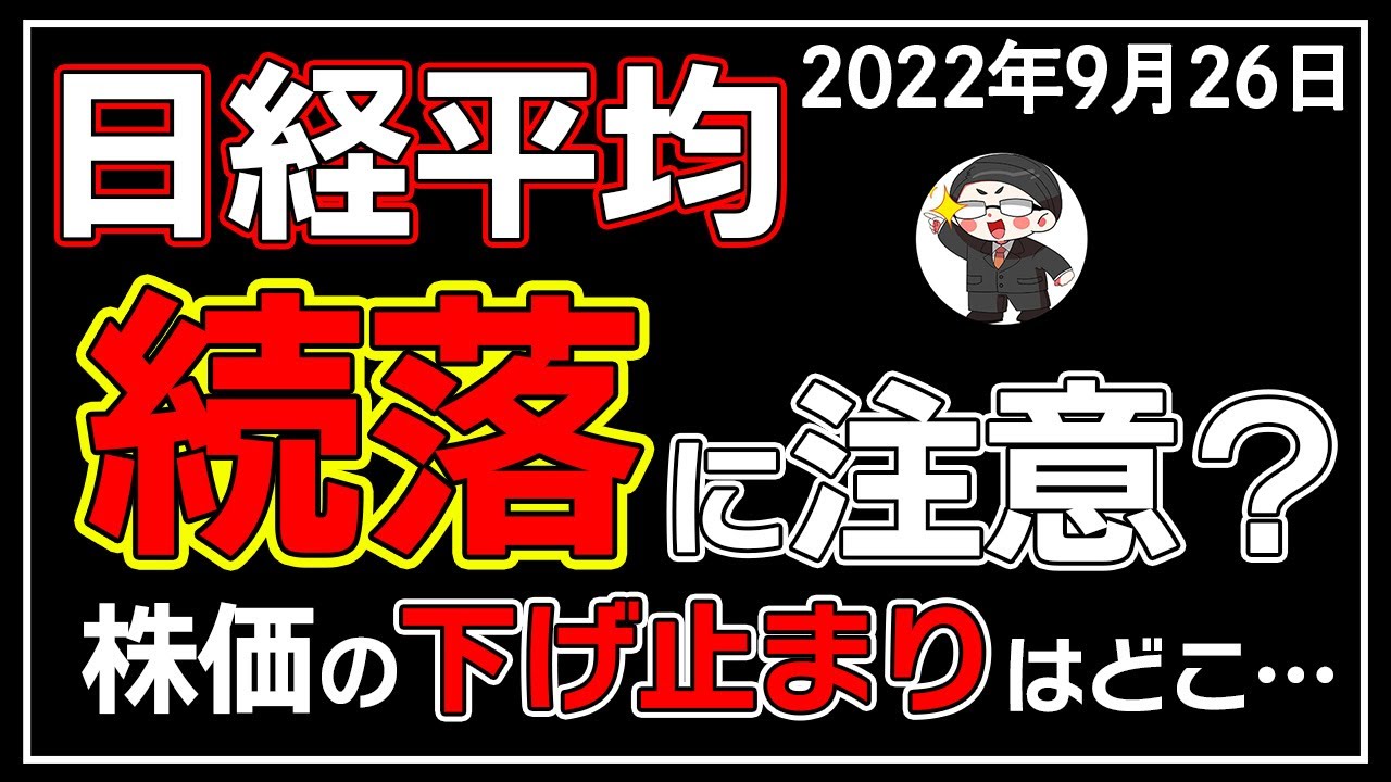 本日9月26日の日経平均は-722円安の4営業日続落となりました。