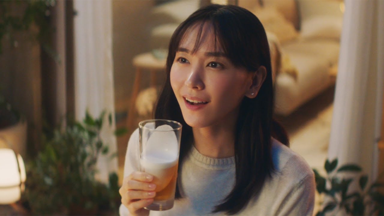 CMは、竹内まりやさんの楽曲「元気を出して」にのせて、人並みの中を歩く新垣さんが、さまざまな人たちが和やかに乾杯をする活気づいた居酒屋のカウンターでビールを飲むシーンを回顧し、ずっと前からお店で愛され続けてきた「アサヒ生ビール」を、自宅のベランダで飲みながら幸せなひとときを過ごす様子が描かれている。新垣さんが、カメラ目線で「日本のみなさん、おつかれ生です!」と優しくチャーミングに乾杯するシーンも見どころだ。