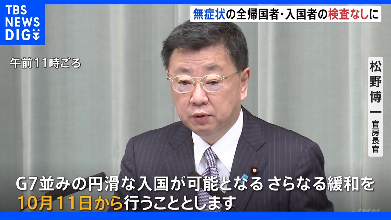 松野官房長官は新型コロナの水際対策について、来月11日から症状がない全ての帰国者・入国者に入国時検査を行わないと明らかにしました。