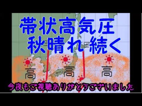 【日本の天気】帯状高気圧。秋晴れが続くパターン