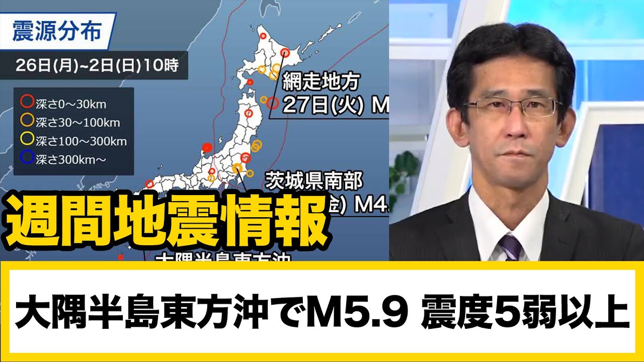 10月2日(日)0時02分頃、鹿児島県・大隅半島東方沖を震源とするマグニチュード5.9、深さ29kmと推定される地震が発生しました。今年、国内で発生した震度5弱以上の地震はこれで13回目です。