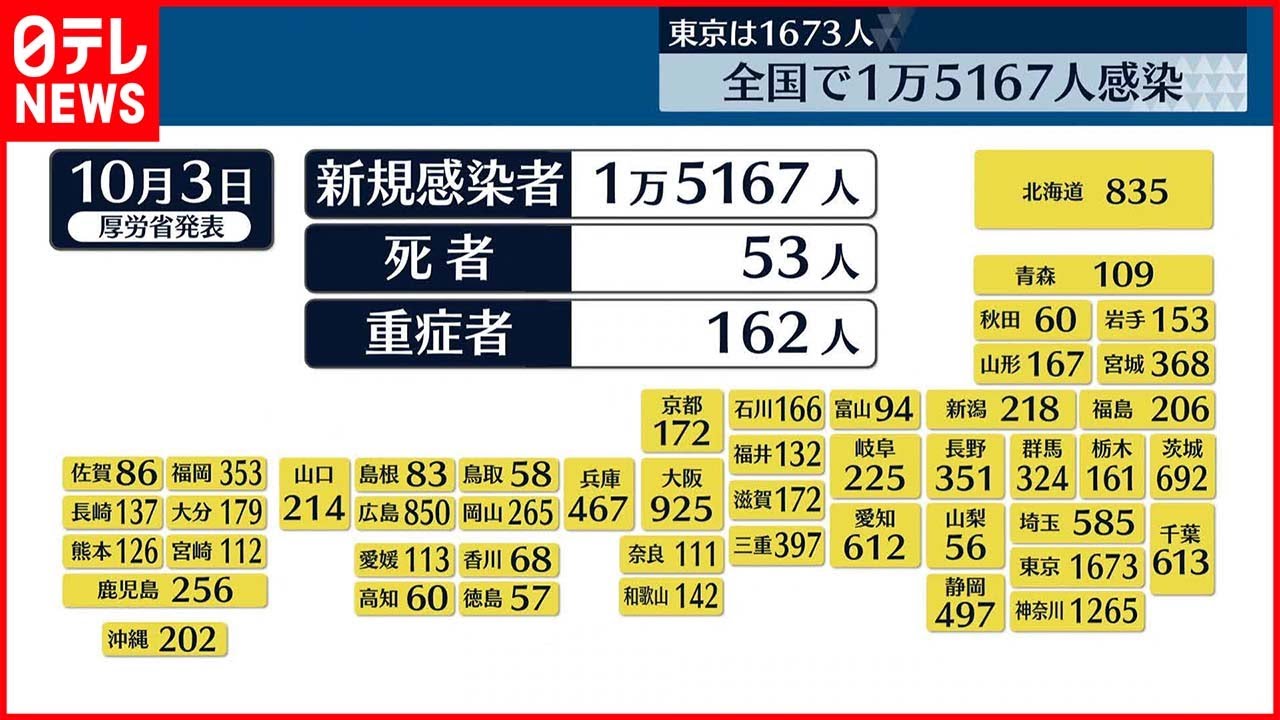 新型コロナウイルスの新たな感染者は全国で1万5167人で、このうち東京都内は1673人確認されたと厚生労働省が発表しました。