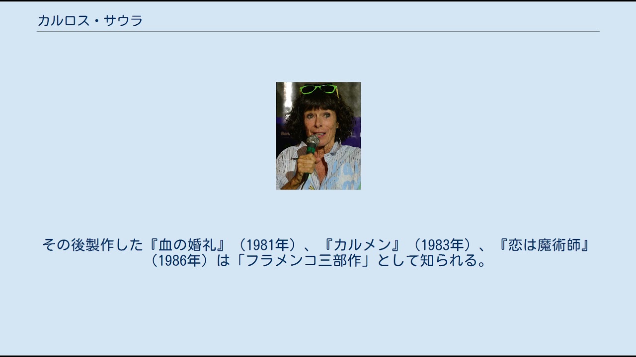 その後製作した『血の婚礼』(1981年)、『カルメン』(1983年)、『恋は魔術師』(1986年)は「フラメンコ三部作」として知られる。