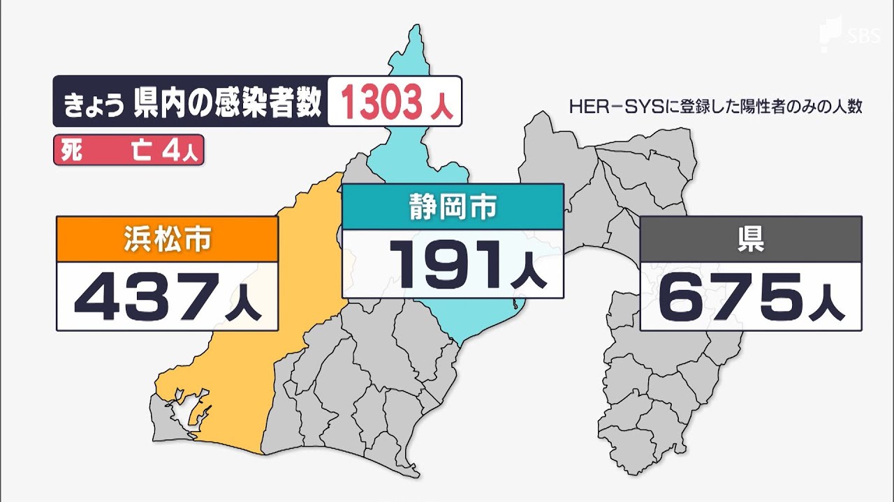 静岡県内では10月5日、新たに1303人が新型コロナウイルスに感染したことが分かりました。 感染者1303人のうち、浜松市は437人、静岡市は191人です。感染者4人の死亡が報告されています。 1日あたりの感染者数は先週水曜日(9月28日:1282人)より21人多く、6日ぶりの1000人台となりました。 #LIVEしずおか 10月5日放送 JNNLocalNEWSSBSSBSテレビTBS系列TVUCOLVB0iYK8ahQ0mFn-lF-8gニュースローカルローカルニュース新型コロナウイルスで静岡静岡放送静岡新聞静岡新聞ニュース静岡県