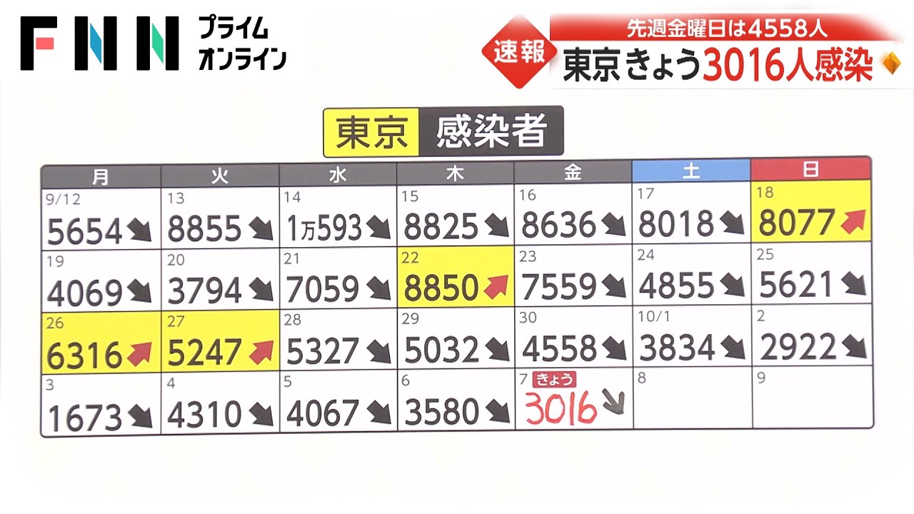 カレンダーを見てみると、7日の感染者は3,016人。