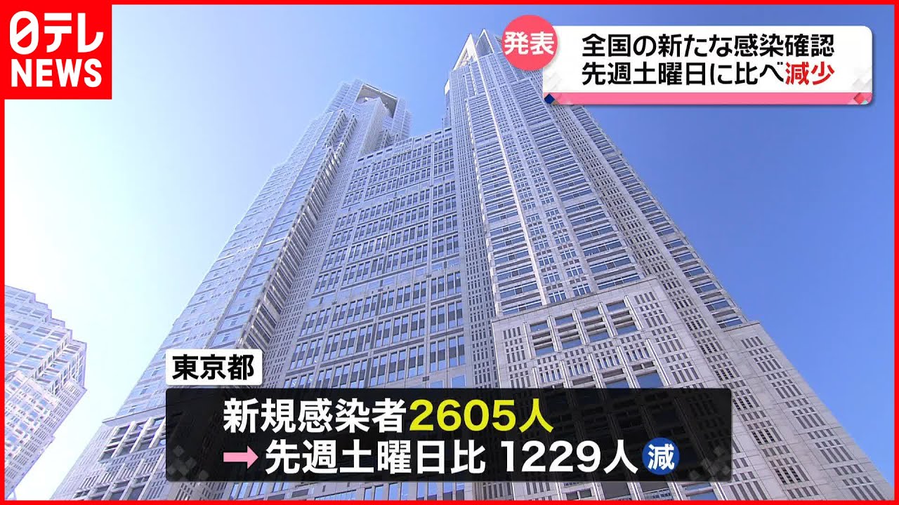 一方、東京都の新たな感染者は2605人で先週土曜日より1229人減りました。