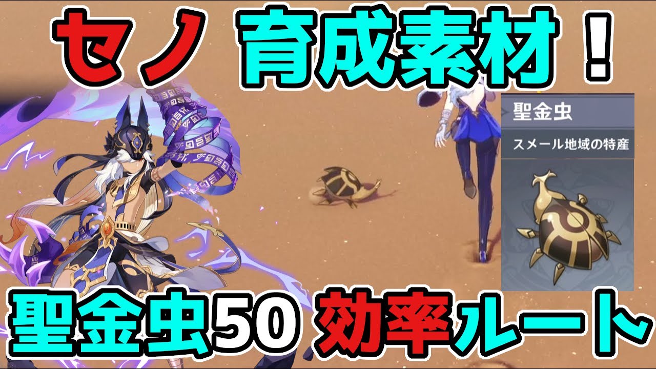 原神げんしん最新バージョンVer3.1のスメールに原神「聖金虫」50コ効率的な回収ルート!セノの育成素材に!についてご紹介した動画になります。世界任務,ギミック謎解き,隠しアチーブメント。旅人の皆さんにガチャでセノ,ニィロウ,キャンディス,ティナリ,鍾離(しょうり)甘雨(かんう)宵宮(ヨイミヤ)万葉(カズハ)夜蘭(イェラン)神里綾華(かみさとあやか)神里綾人ウェンティ雷電将軍と珊瑚宮心海(サンゴノミヤココミ)八重神子(やえみこ)申鶴(しんかく)魈(しょう)荒瀧一斗(あらたきいっと),アルベド,エウルア,胡桃(フータオ)とタルタリヤが出ますように。他の動画などでは世界任務アチーブメント豪華な宝箱原石モラ育成素材天賦突破素材貴重な宝箱冒険経験値聖遺物稲妻評判経験値などの入手方法などもご紹介しています。このチャンネルではリーク画像や情報を扱っていません。考察情報なども公式情報を元に楽しむ内容となっています。
