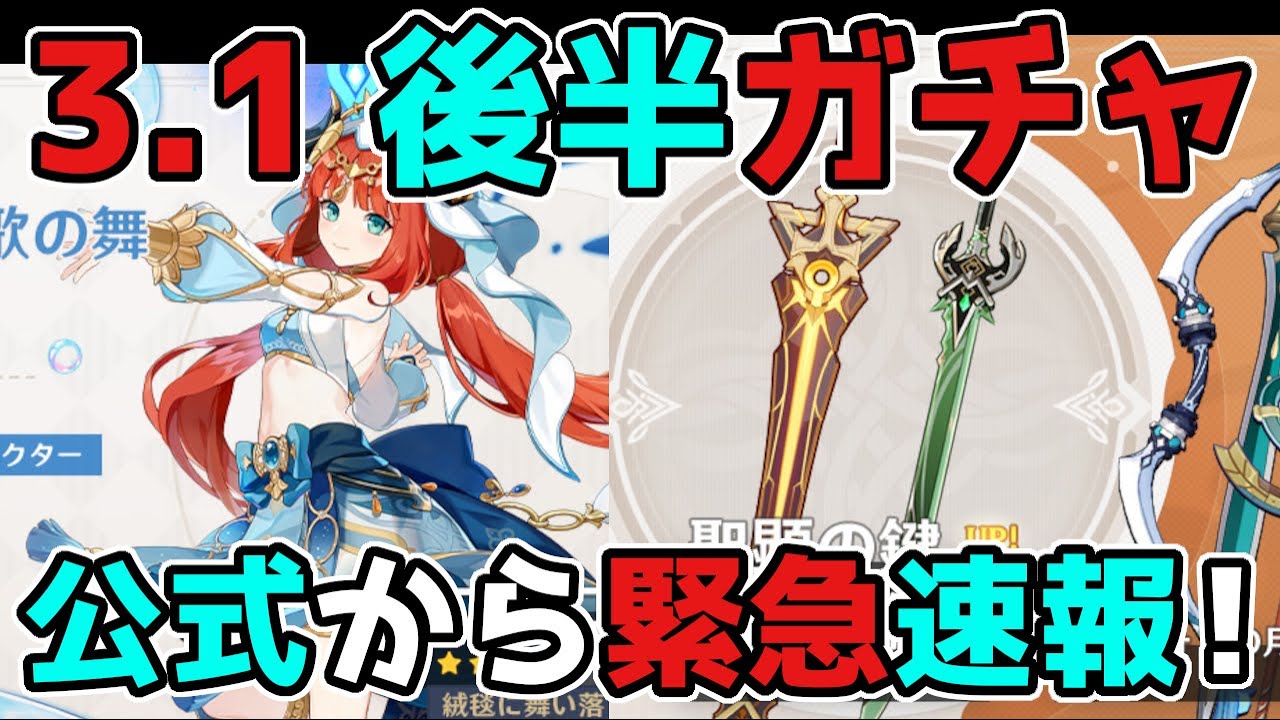 原神げんしん最新バージョンVer3.1のスメールにて、3.1後半ガチャの詳細が公式から緊急発表!についてご紹介した動画になります。百人一揆。旅人の皆さんにガチャでセノ,ニィロウ,キャンディス,ナヒーダ,ティナリ,鍾離(しょうり)甘雨(かんう)宵宮(ヨイミヤ)万葉(カズハ)夜蘭(イェラン)神里綾華(かみさとあやか)神里綾人ウェンティ雷電将軍と珊瑚宮心海(サンゴノミヤココミ)八重神子(やえみこ)申鶴(しんかく)魈(しょう)荒瀧一斗(あらたきいっと),アルベド,エウルア,胡桃(フータオ)とタルタリヤが出ますように。他の動画などでは世界任務アチーブメント豪華な宝箱原石モラ育成素材天賦突破素材貴重な宝箱冒険経験値聖遺物稲妻評判経験値などの入手方法などもご紹介しています。このチャンネルではリーク画像や情報を扱っていません。考察情報なども公式情報を元に楽しむ内容となっています。