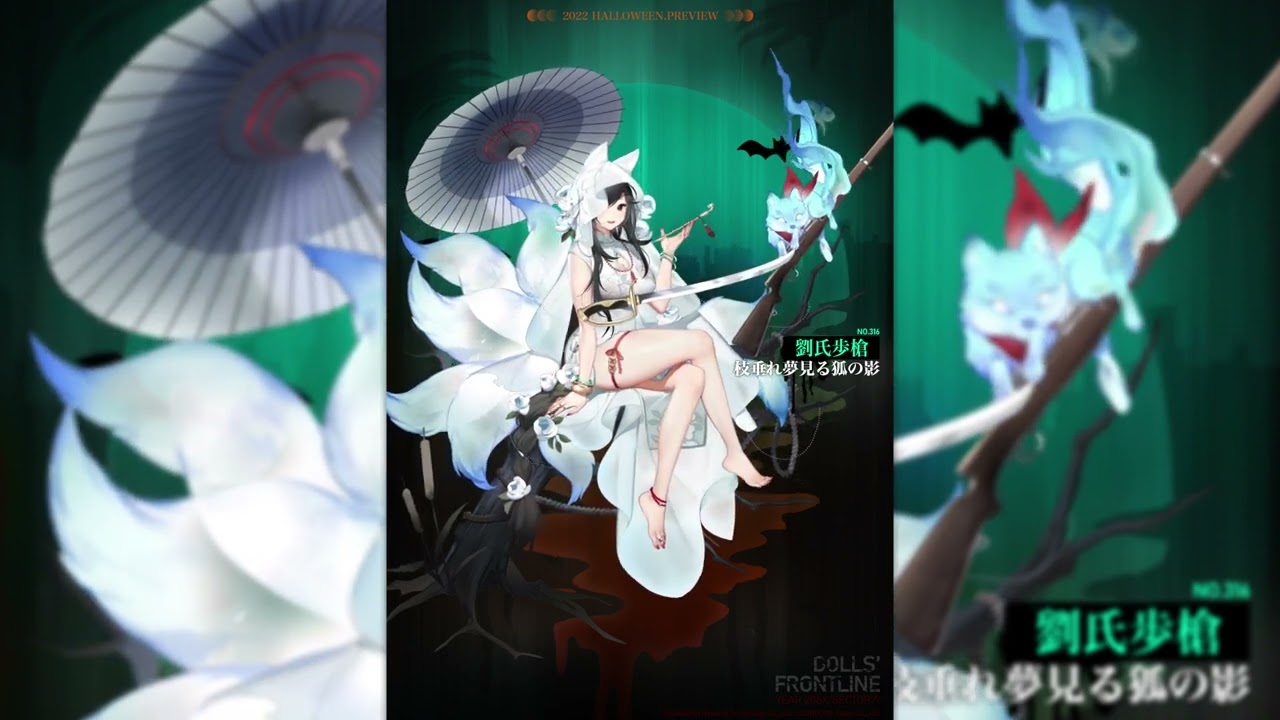 ひんやりした秋風が運ぶ、妖しくも美しいハロウィンの新スキンテーマ『蝕月記』より「劉氏歩槍専用スキン『枝垂れ夢見る狐の影』のLive2Dプレビューです!