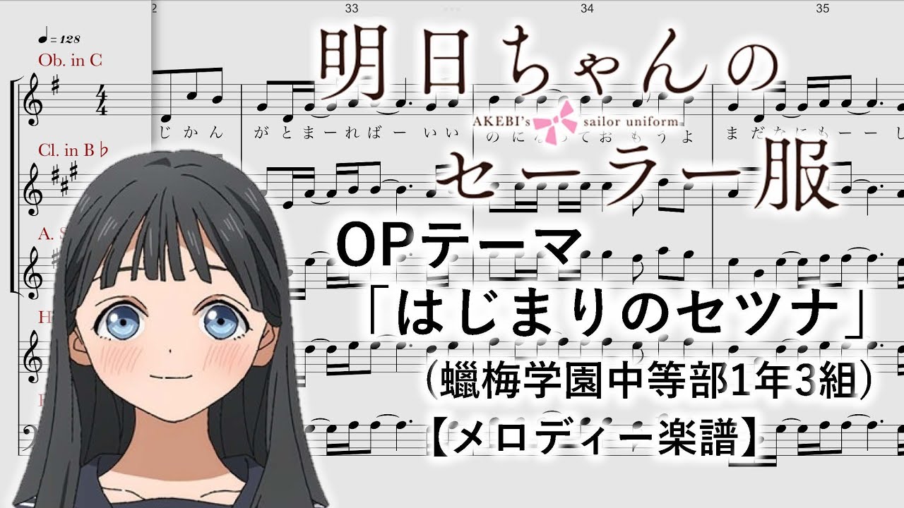 2022年冬アニメの明日ちゃんのセーラー服のオープニングテーマ「はじまりのセツナ」(蠟梅学園中等部1年3組)のメロディー譜を作成しました!