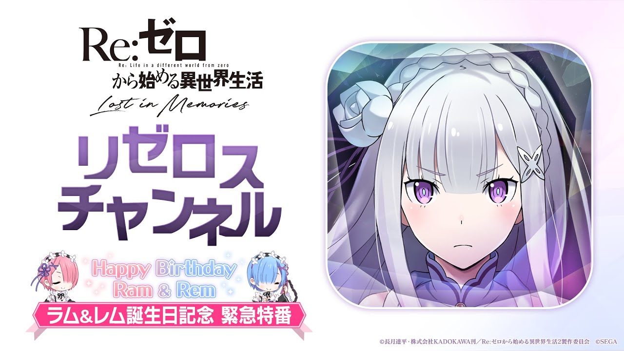 『Re:ゼロ』公式アプリ『Re:ゼロから始める異世界生活 Lost in Memories』(略称:リゼロス)の公式放送「リゼロスチャンネル~ラム&レム誕生日記念 緊急特番~」が1月30日(土)配信決定!