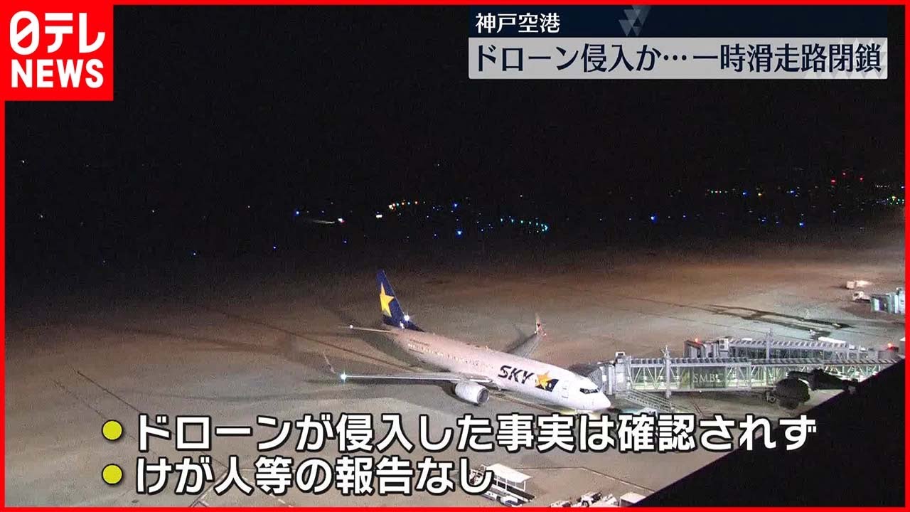 14日午後8時ごろ、神戸空港にドローンが侵入したという目撃情報がありました。神戸空港は一時滑走路を閉鎖しましたが、安全確認の上、午後9時すぎに再開しました。