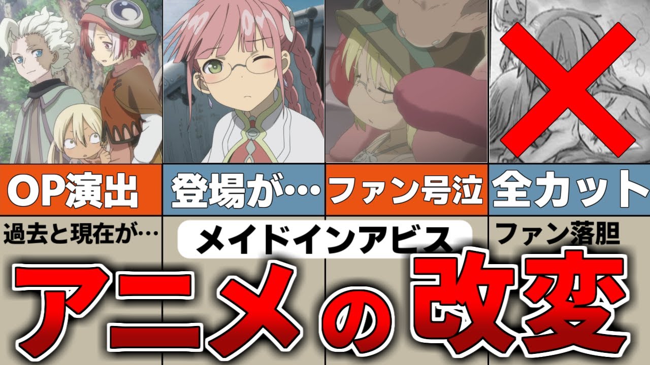 このチャンネルではアニメ、メイドインアビスの解説をゆっくり解説でやって行きます!感動の最終回をむかえた『メイドインアビス』 原作を知っているファンでも大号泣したアニメの演出があったのを知っていますか?今回はそんなアニメスタッフの本気を見て行きましょう! ここでおさらいしておけば本編が100倍楽しくなります! #メイドインアビス #ゆっくりアニメ解説 #火金曜日新作投稿 メイドインアビス 烈日の黄金郷