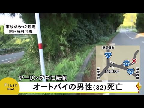 13日午前、阿蘇郡南阿蘇村でオートバイが転倒し、運転していた福岡市の男性が死亡しました。13日午前10時15分ごろ、通行人の女性から「林にオートバイが突っ込んでいる」と通報がありました。 警察によりますと、オートバイを運転していた福岡市東区に住む冨吉 竜太さんが 近くに倒れていて、その場で死亡が確認されました。 冨吉さんは福岡市の自宅から集合場所の草千里に向かう途中だったということで、警察が事故の原因を調べています。 オートバイ南阿蘇村吹石一恵男性死亡