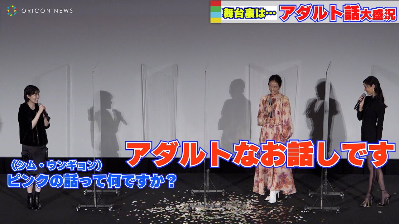 木村文乃が「ここに(大島)優子ちゃんがいたら、ウンギョンちゃんに『エッチって韓国語ってなんて言うの?』って」と撮影現場で実際にあったエピソードを明かすと、菜々緒は「韓国語を教えてくれて『その言葉は覚えても絶対に言わない方がいいです』って真面目に教えてくれる」と笑う。シムは「次がありましたら『韓国語わかりません』って言います」と赤面していた。