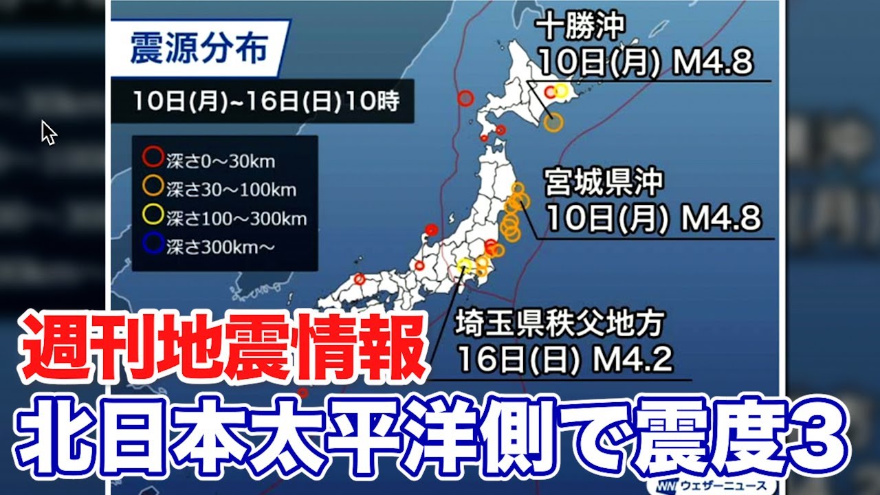 前週に引き続き北日本太平洋側の地震が目立ち、関東は内陸部を震源とする地震が多くなりました。震度3以上の地震は3回発生しています。