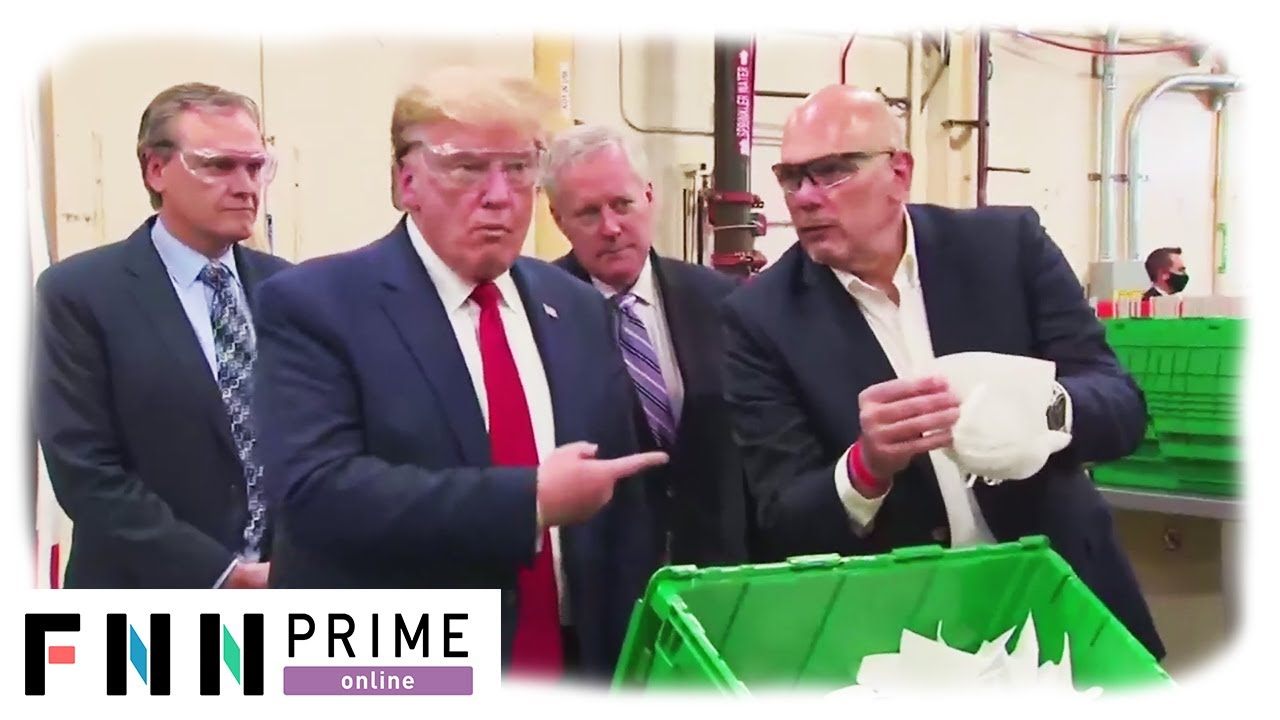 トランプ大統領はこのあと、マスク工場を見学したが、その際にマスクを着用しておらず、アメリカメディアは「ゴーグルを装着したのに、なぜマスクはつけないのか」と疑問視している。