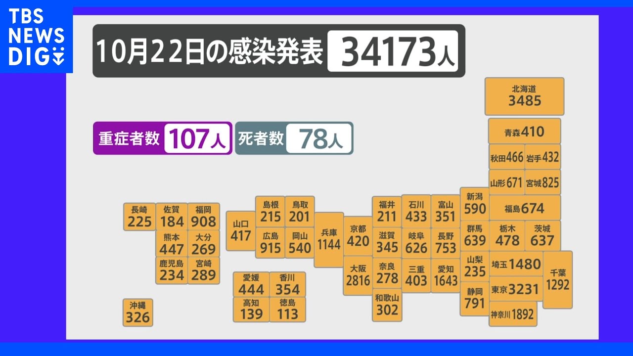 新型コロナウイルスについて、厚生労働省は22日、新たに全国で3万4173人の感染が報告されたと発表しました。