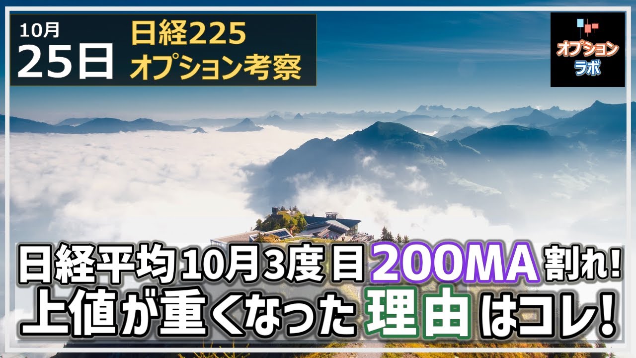 【日経225オプション考察】10/20 日経平均 200MA超えも戻り売りか? 金利とVレシオの不穏なチャートに注意!