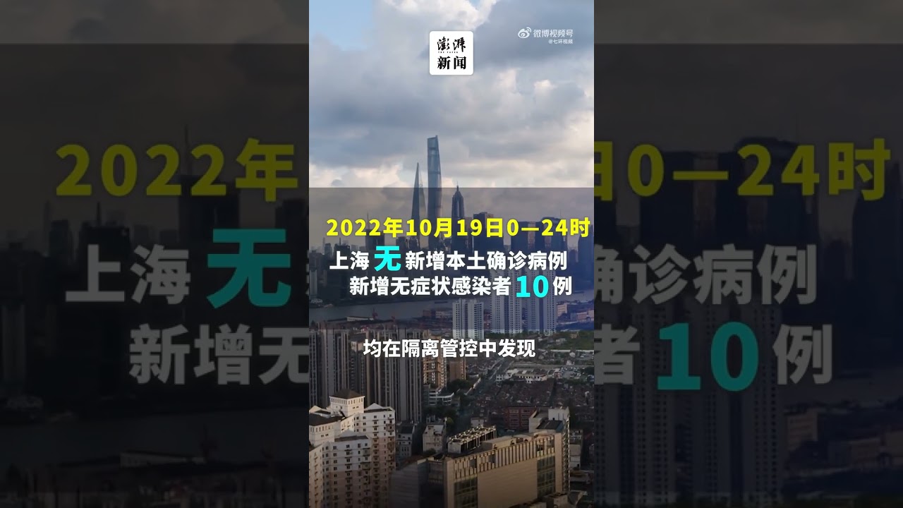 上海市卫健委今早(10月20日)通报:2022年10月19日0—24时,无新增本土新冠肺炎确诊病例,新增本土无症状感染者10例,均在隔离管控中发现。