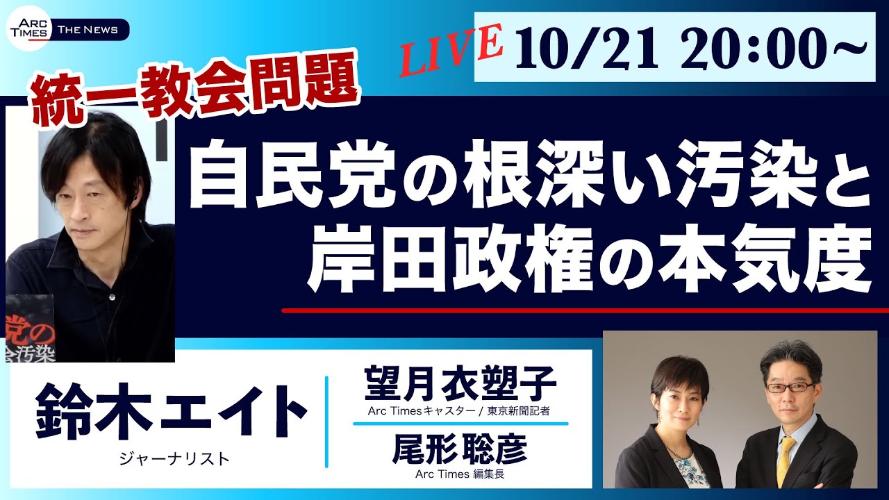 Share Facebook Twitter Pinterest LinkedIn Arc Times The News 今週は10/21金曜日20時〜です。 ※来週はいつもどおり、火曜20時から生配信です。 ゲストは… 鈴木エイトさん(ジャーナリスト) 他出演者は… 望月衣塑子(Arc Times キャスター / 東京新聞記者) 尾形聡彦(Arc Times 編集長) チャンネル登録をよろしくお願いいたします。 2022.10.21 20:00〜ライブ配信 芦田桂子