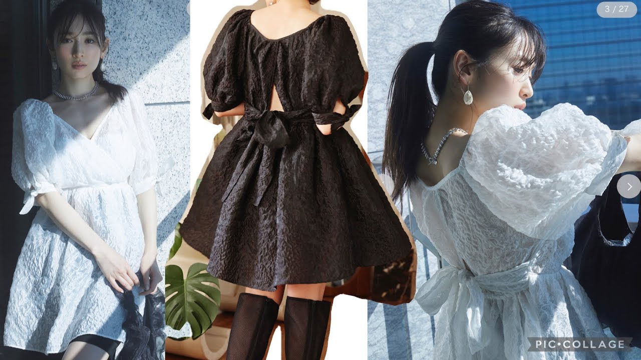 大人フェミニン【SNIDEL スナイデル 】の✨今のトレンド✨チュニックtunic購入🤍🖤シアー感のあるジャガード素材でカシュクール🌿リボンもあってメリハリつけれる🎀【泉里香】着用🤍🕊