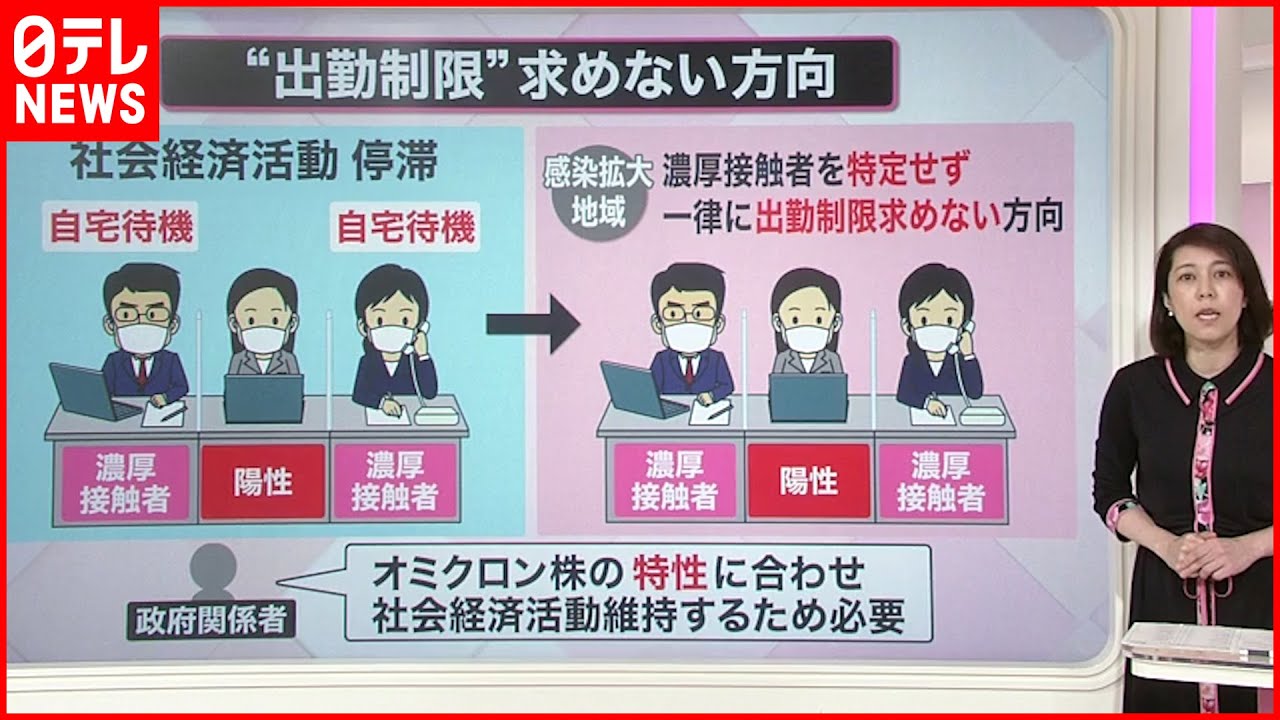 これまでは、職場などで感染者が出ると、その会社で濃厚接触者を特定して、自宅待機などを指示してきました。ただ、オミクロン株のように感染力が強い場合は、濃厚接触者が多すぎて仕事が回らず、社会経済活動が停滞するケースがありました。