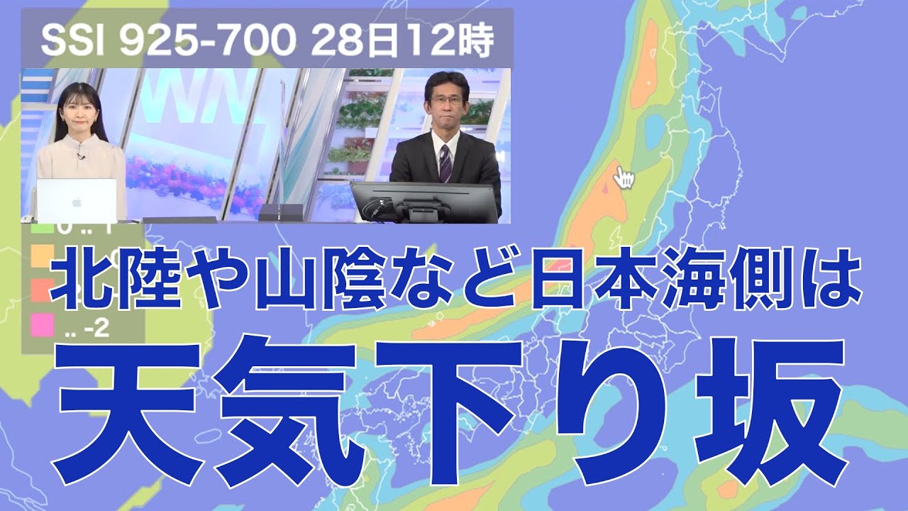 東北の日本海側や北陸から山陰は天気が下り坂です。午後は雨が降りやすくなり、雷雨となる所もある見込みです。