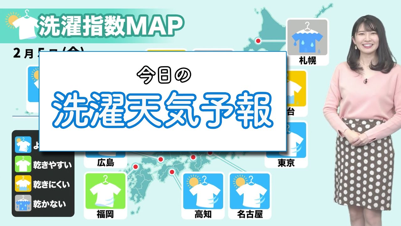 今日は西・東日本の広範囲で洗濯物の外干しOKです。ただ、九州は徐々に雲が広がりますので、洗濯物はお早めに。