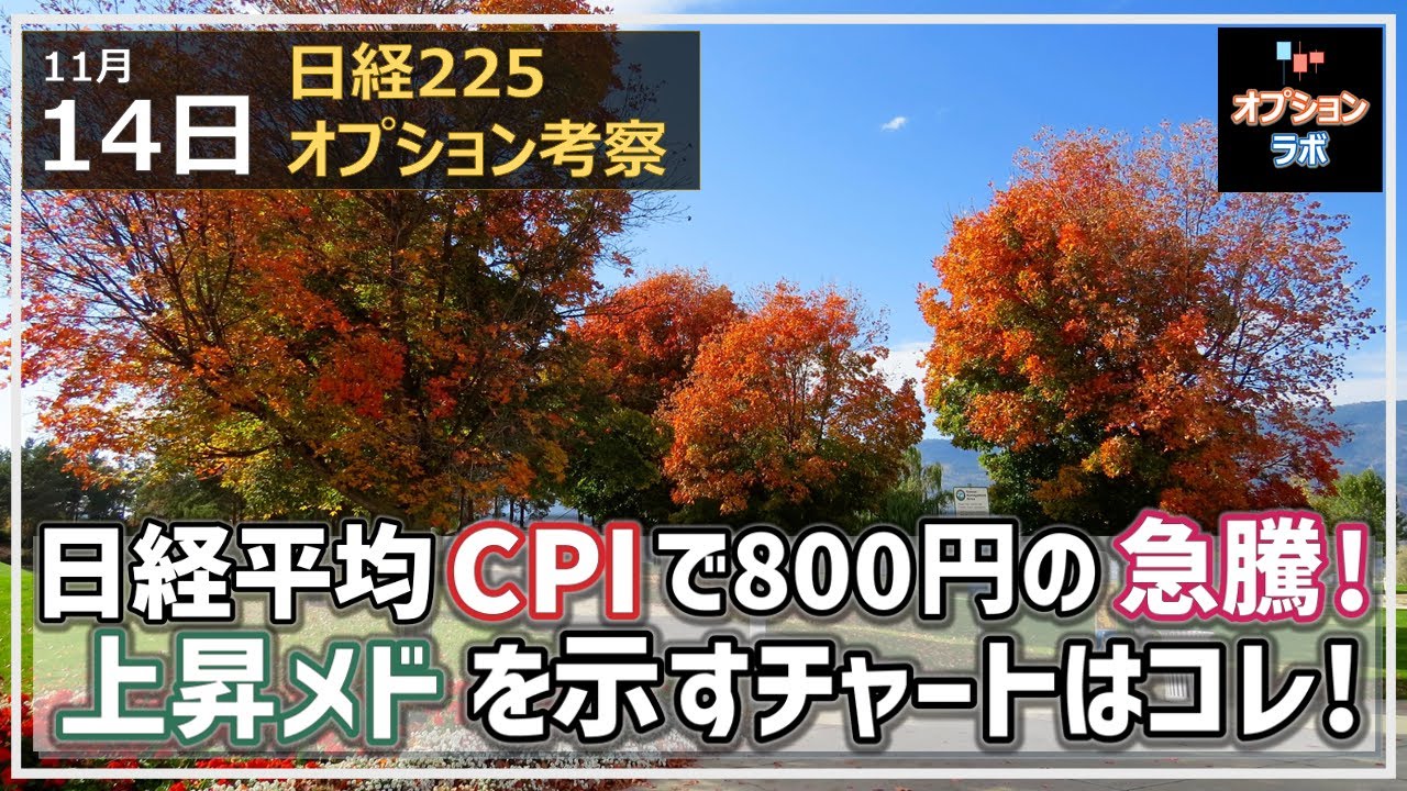 【日経225オプション考察】11/10 日経平均 NYが上昇一服で連れ安の中CPIへ! CPI通過でVIXが跳ねる方に賭けろ!