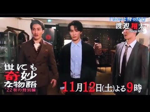 11月12日の土曜プレミアムで放送の、「世にも奇妙な物語’22秋の特別編」の予告編です。 今回は心温まるストーリーが中心となっております。豪華俳優陣とストーリーテラー• タモリがお届けする4つの奇妙な世界をご覧あれ! 〈ラインナップ〉 ・元カレと三角関係 (土屋太鳳) ・コンシェルジュ (観月ありさ & 金子ノブアキ) ・わが様 (沢村一樹) ・ちょっと待った! (渡辺翔太(SnowMan)) 11月12日20222022秋22秋Snow Manタモリフジテレビ世にも世にも奇妙な物語世にも奇妙な物語2022世にも奇妙な物語秋土屋太鳳奇妙怖い話沢村一樹渡辺翔太秋秋の特別編観月ありさ金子ノブアキ