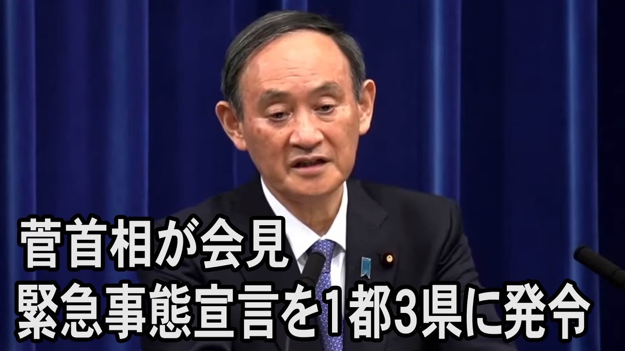 菅義偉(すが・よしひで)首相は7日夕の記者会見で、緊急事態宣言の再発令に関し「大変な危機感を持っており、何としても感染拡大を食い止め、減少傾向に転じさせるため、緊急事態宣言を決断した」と述べた。