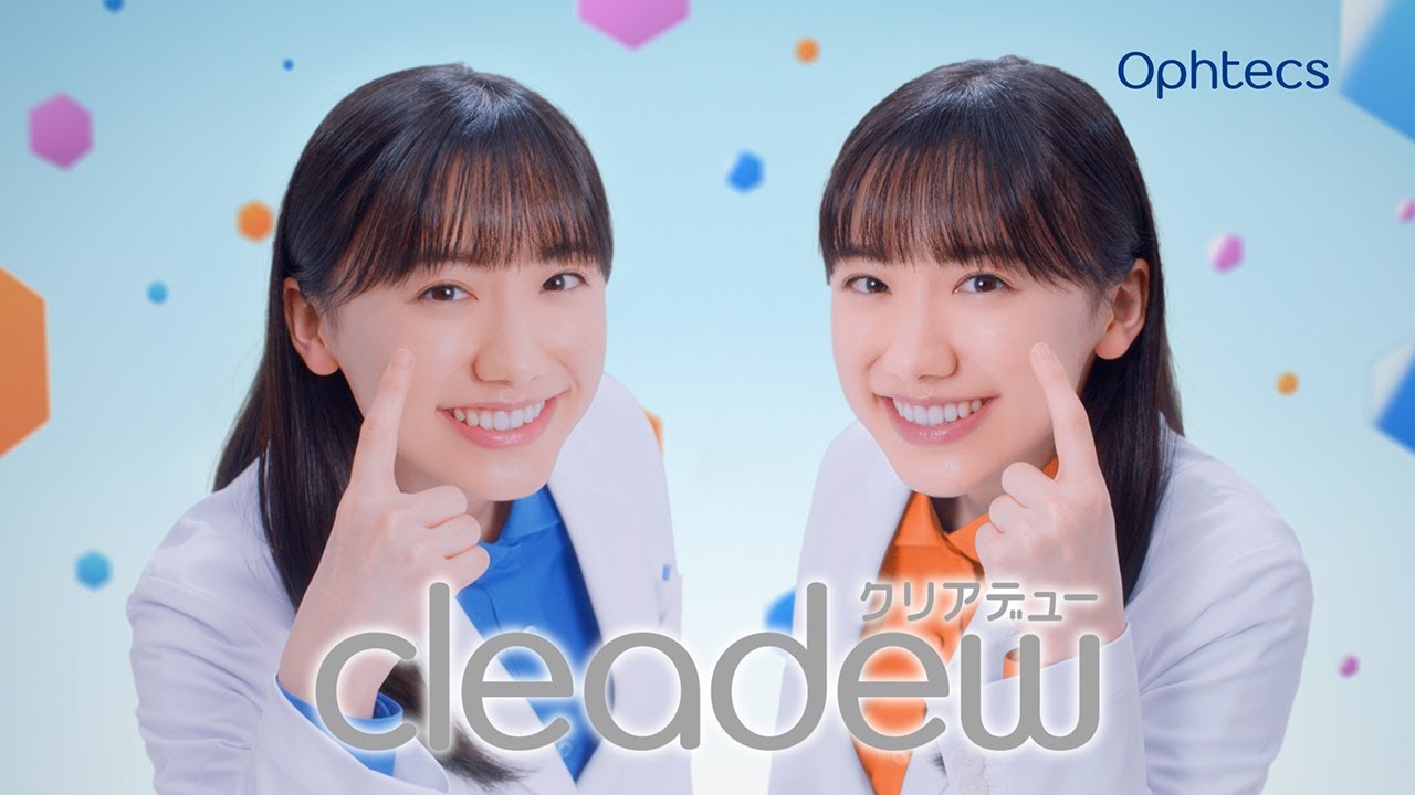 新CMでは、「クリアデュー プロケアソリューション」と「クリアデュー ハイドロ:ワンステップ」という2製品のイメージカラーに合わせ、ブルーとオレンジのシャツに白衣姿の、2人の芦田さんが「クリアデュー研究員」役として登場。それぞれの特長について、実演を交えながら紹介している。