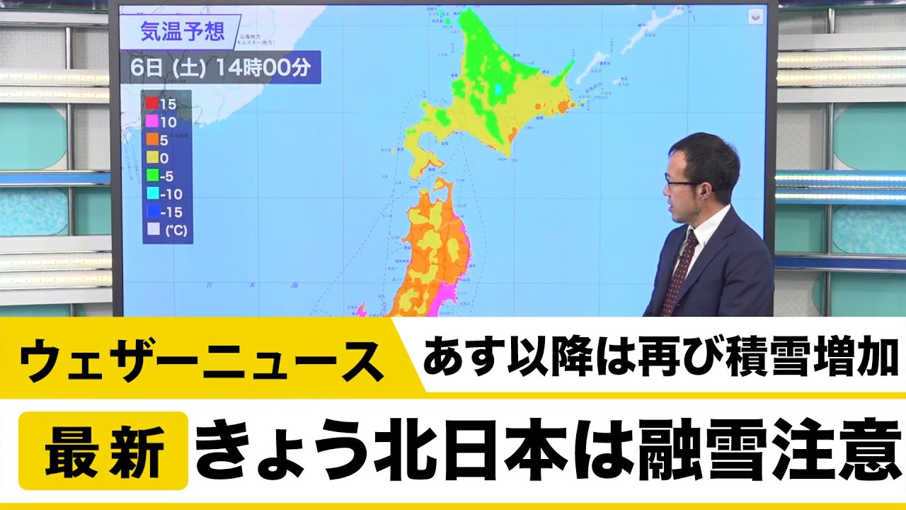 今日6日(土)は、北海道道北付近を低気圧が通過します。この低気圧に向かって暖かな空気が北上するため、北日本は雨や湿った雪の降りやすい天気となります。 北海道でも札幌などは雪解けによる路面状況の悪化が心配です。屋根からの落雪や山ではなだれにも注意してください。 2021Casterウェザーニュースキャスターゲリラ豪雨ゲリラ雷雨ニュース乾燥予報停電北日本台風台風情報地震大雨大雪天気天気予報天気痛情報暴風東日本気象気象予報士洗濯減災西日本防災