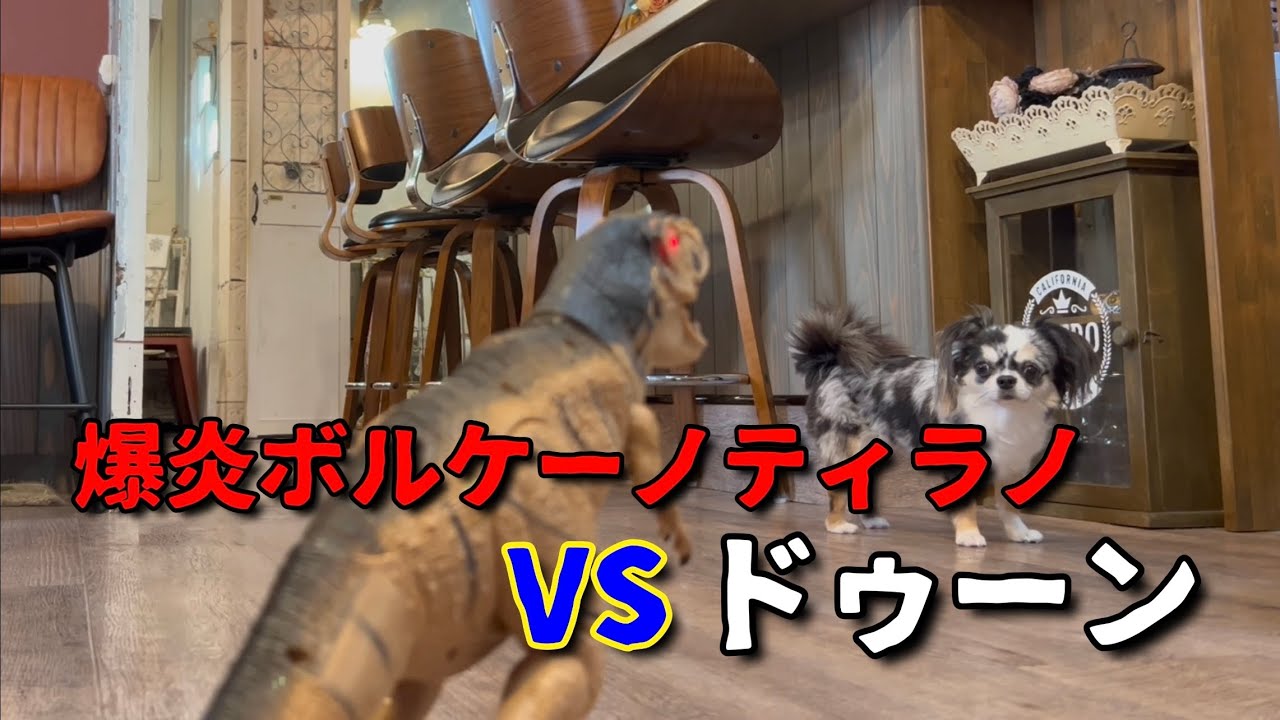 爆炎ボルケーノティラノを勢いでポチったので愛犬ドゥーンと戦わせてみた #爆炎ボルケーノティラノ #おもちゃ #TOY #チワワ #dog #犬 #ドゥーン #ラジコン #おもちゃToyチワワボルケーノ・パーク愛犬