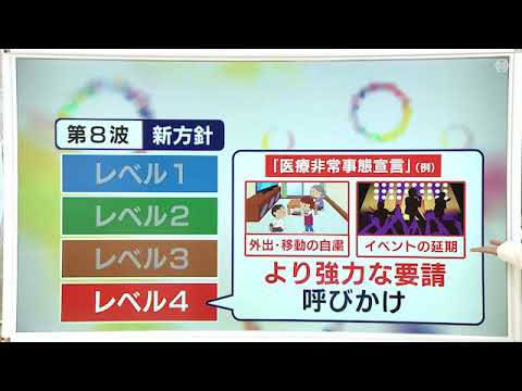 国が第8波を受けてまとめた新たな対策方針では、病床使用率の状況に応じて、50%を超えると「医療ひっ迫防止対策強化宣言」が、80%を超えると「医療非常事態宣言」が出されることになります。