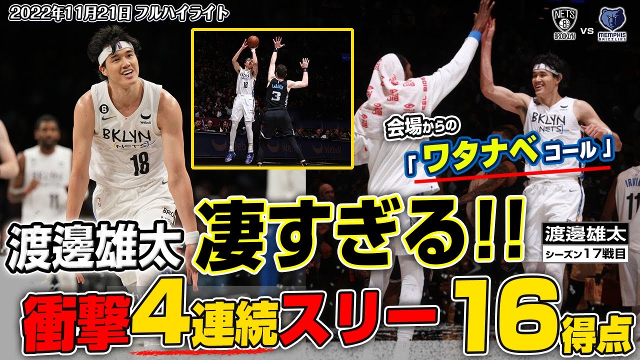 渡邊雄太所属のネッツはシーズン17戦目、ホームでメンフィス・グリズリーズと対戦