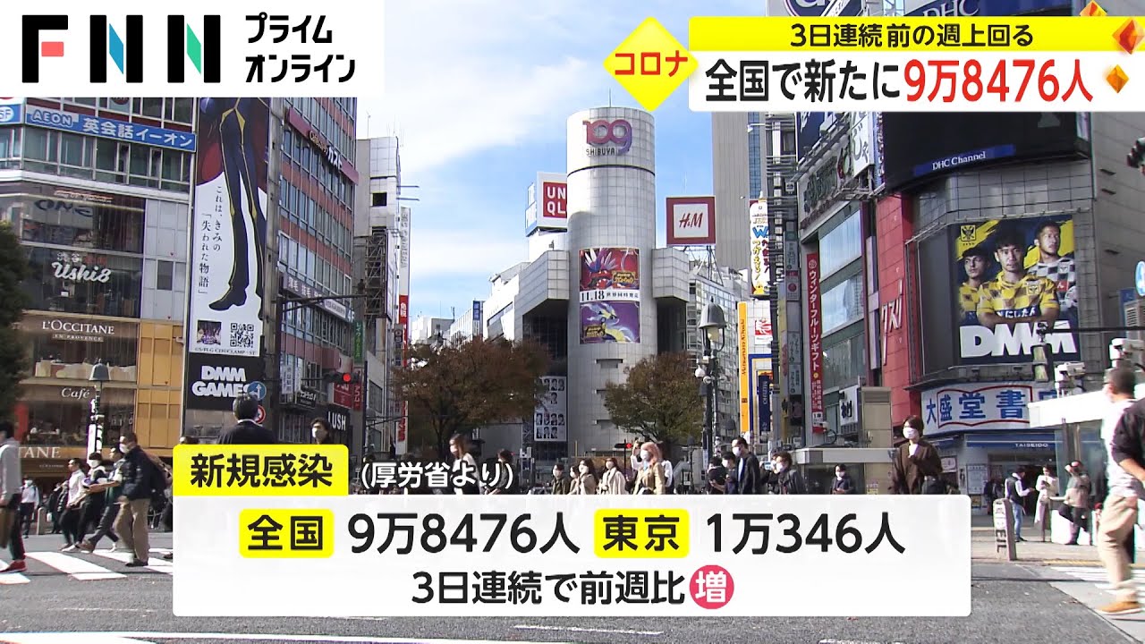 厚生労働省によると、新型コロナウイルスの新規感染者は、全国で9万8,476人、東京で1万346人確認された。