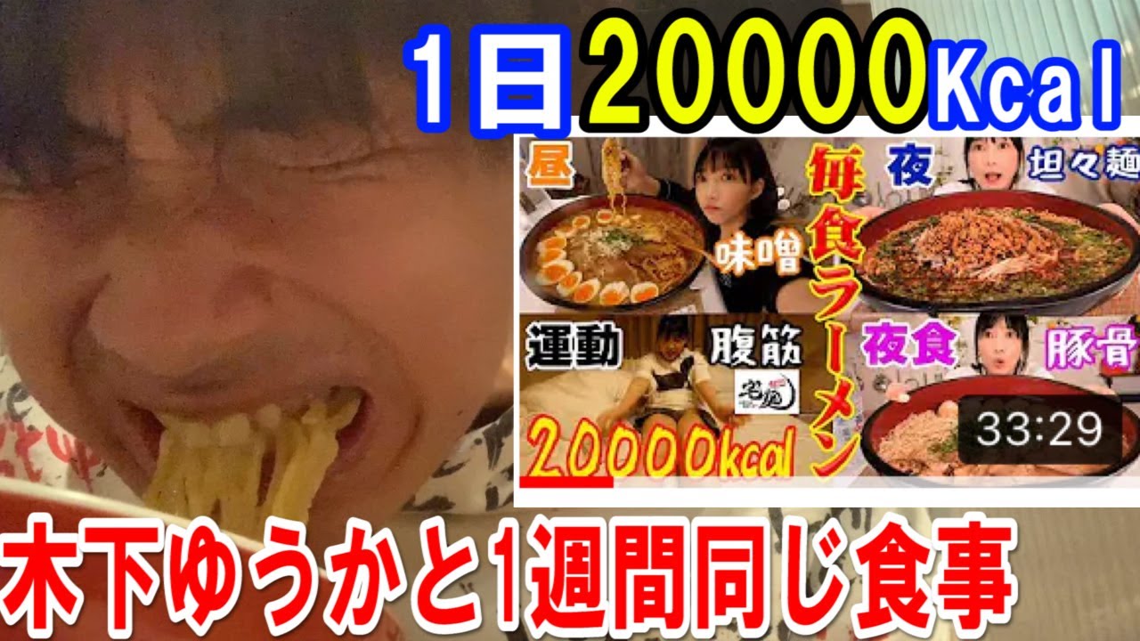 思い入れはずっとあった企画、そしてこの3年3年前の第1回→ https://youtu.be/ZXCRXQCwlzY 木下ゆうか様→ https://youtube.com/user/kinoyuu0204 Twitter(三納の思想的な一面)→ https://twitter.com/sannou877 Instagram(三納の無邪気な一面)→ https://instagram.com/sannawuyu?igshid=YmMyMTA2M2Y= #1週間1週間木下ゆうかが食べた物と同じ物を同じ量食べないといけない生活ダイエットタケヤキ三納物語優香大食い木下ゆうか