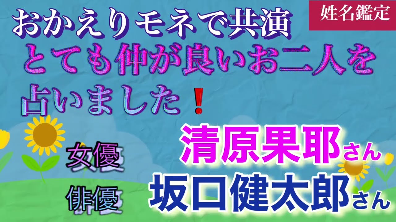 Share Facebook Twitter Pinterest LinkedIn おかえりモネで共演されたお二人を占いました🔮 仲の良いカップルだとお噂が広がり、交際はあるのか❓結婚はありか❓等占いました❗️ お二人の今後のご活躍とご多幸を祈念致します❣️ 姓名判断は転ばぬ先の杖♪ 世界中の人々が平和で愛に満ちた日々を過ごせますように〜♪ 姓名鑑定歴45年 鑑定人数3万人超え 祖父から母、私へと大切なものを受け継いで参りました❗️ 幸運を呼ぶチャンネル Cannel for you〜空宙SORA〜 おかえりモネ