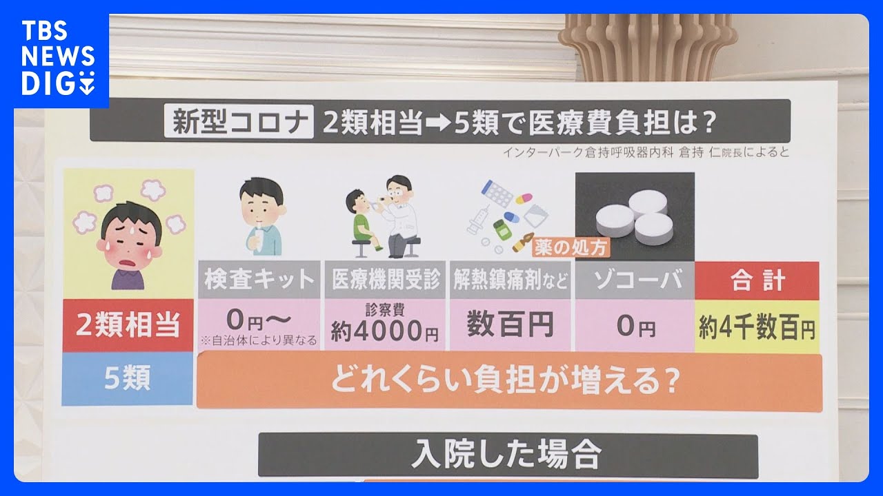 まずは検査や治療にかかる費用についてです。現在は2類相当ですから、全額公費での負担ということになっていますが、5類になりますと、公費での負担はなし。つまり自費になるということです。
