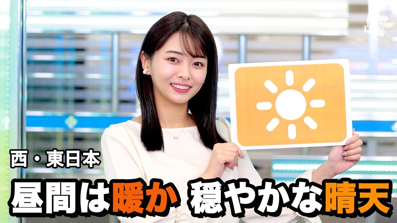 今日は西日本・東日本で、広く日差しが届きます。朝は冷えこみますが、昼間は日差しの温もりを感じることができそうです。北陸はにわか雨の可能性があるので、お気を付けください。北日本日本海側や新潟は雨や雪が降ることがあります。沿岸では、強風や高波にご注意ください。特に、新潟や山形で雨や雪が降りやすく、一時的に強まったり雷やアラレを伴ったりする恐れがあります。