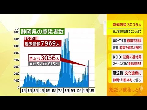 1日 静岡県内では、新たに3036人が新型コロナウイルスに感染していたことがわかりました。2日連続で3000人台となり、6日連続で前の週の同じ曜日を上回っています。